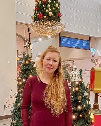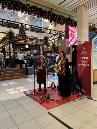 Gine Bryld spiller danske og engelske julehits med sin sprøde stemmer og akkompagneret af sin guitar til glæde for alle aldre