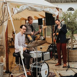 Bookes som trio - udvidelse med vokal eller blæser kan tilkøbes. 1 set á 45, 2 set á 45 eller 3 set á 45. Skriv for at få et uforpligtende tilbud.